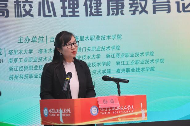 交流研讨环节由塔里木职业技术学院党委委员、副院长梅娇主持并发言,她详细介绍了学校心理工作成效,并指出从东海之滨到天山南麓,这场跨越千里的“心”对话,既是教育理念的碰撞,更是育人责任的共鸣,坦诚分享西部院校在资源整合、专业队伍建设中的现实困境,发出深化东西协作的合作倡议;塔里木大学、南京工业职业技术大学等高校也分别阐述了本校在心理育人中的特色举措,为西部院校提供借鉴。现场思想碰撞不断,共识持续凝聚,为跨区域协作奠定坚实基础。