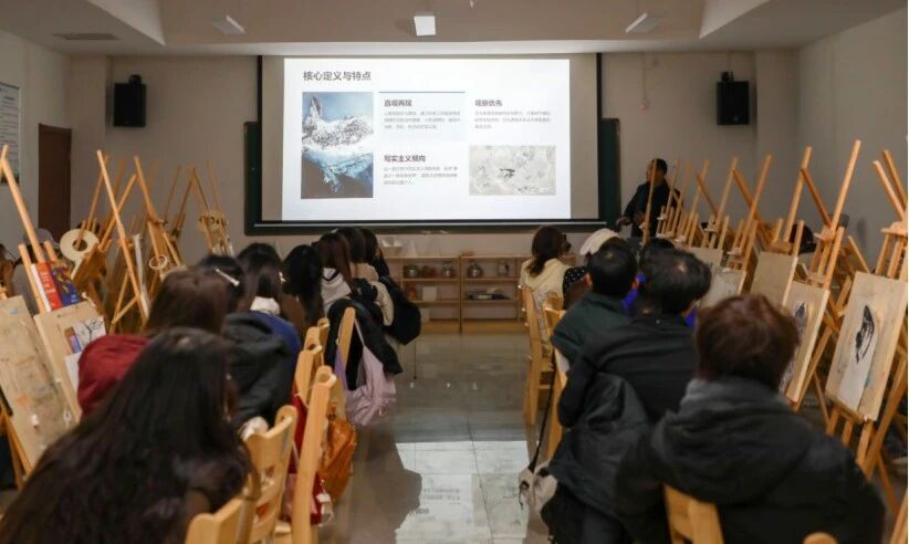 培训以“绘画的五个层次的艺术表达”为主题,范永恒结合多年创作实践,以“画我所见、所知、所感、所想、所悟”为脉络,阐释灵感与生活的联结、艺术语言与时代精神的融合,让师生深化对艺术创作的认知。