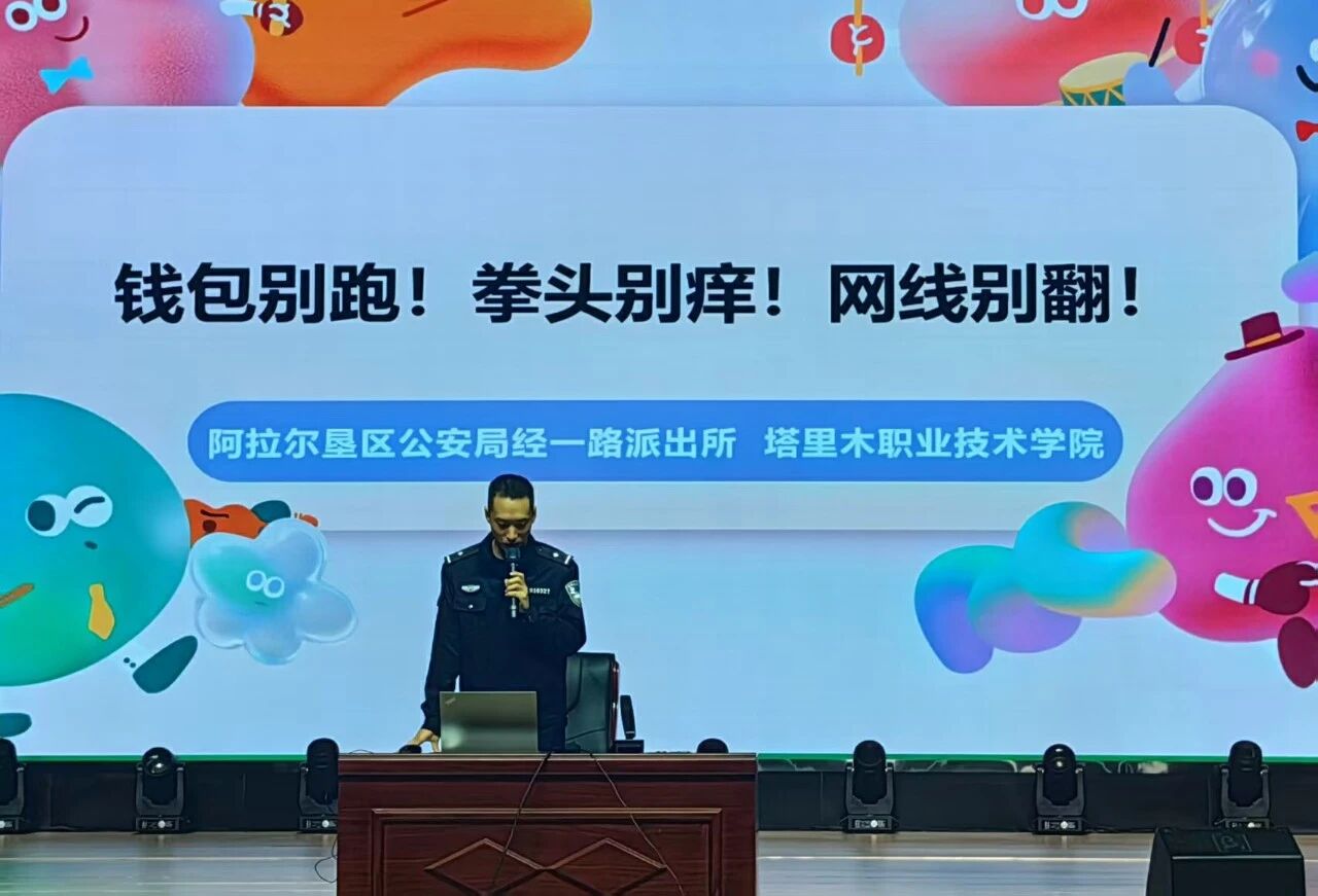 为切实提升学生防范电信网络诈骗的意识和能力,筑牢校园安全防线,11月12日,塔里木职业技术学院特邀经一路派出所民警开展防范电信诈骗专题讲座,经济管理学院2025级全体学生及辅导员参加讲座。