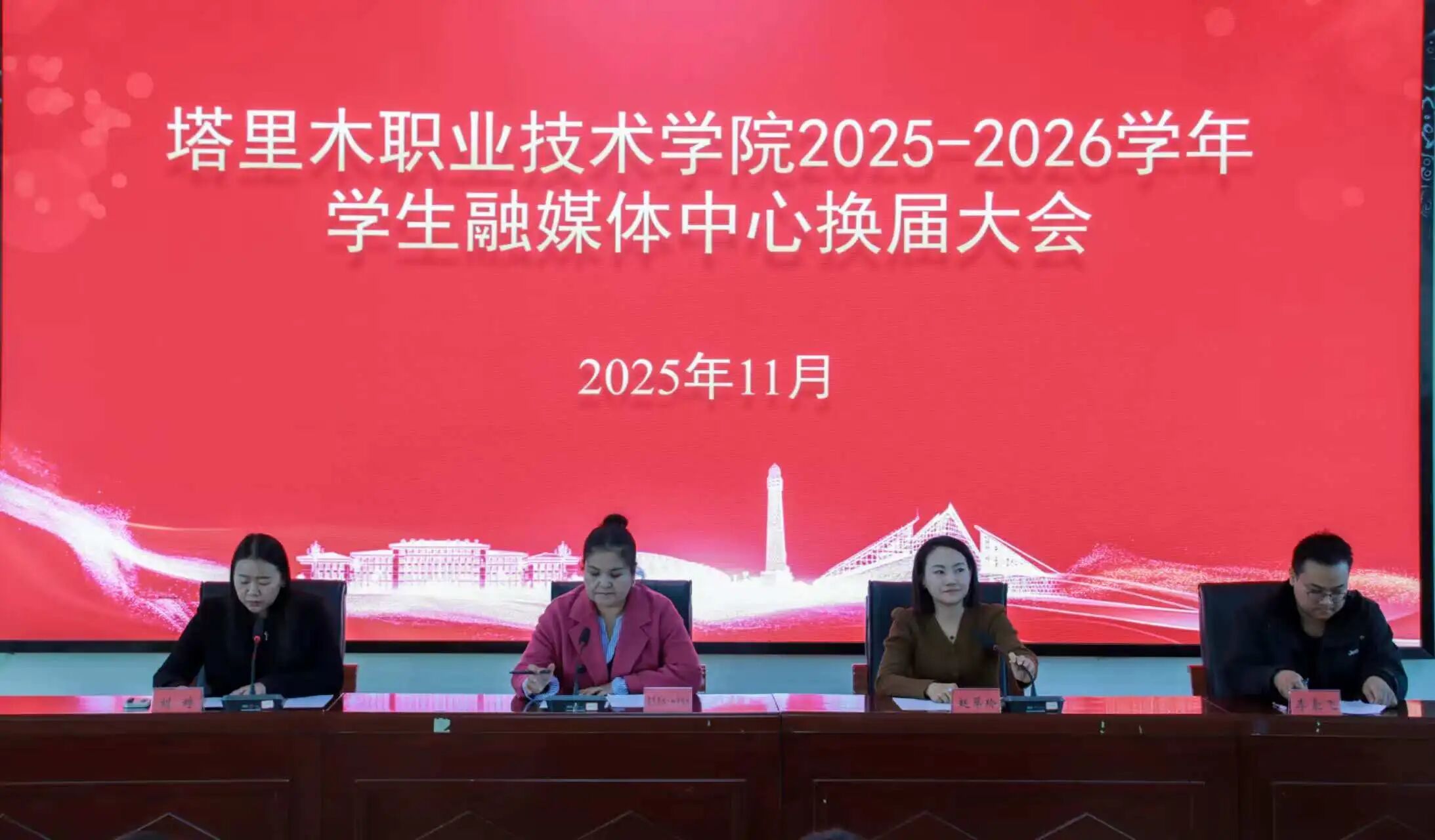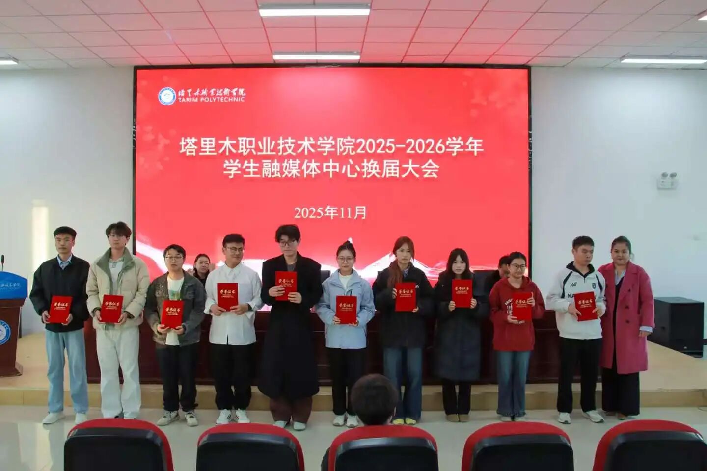 为进一步加强校园宣传思想文化建设,健全学生融媒体宣传队伍体系,激发青年学生参与校园文化传播的积极性与创造力,11月12日,塔里木职业技术学院举行2025-2026学年学生融媒体中心换届大会。