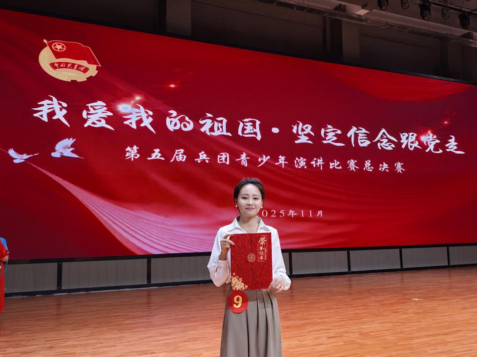 11月7日,由兵团团委联合兵团党委宣传部、兵团党委统战部、兵团党委直属机关工委、兵团教育局、兵团财政局共同举办的第五届兵团青少年“我爱我的祖国·坚定信念跟党走”演讲比赛总决赛圆满落幕,第一师阿拉尔市选送的参赛选手兰婷在激烈角逐中脱颖而出,最终斩获二等奖的优异成绩!