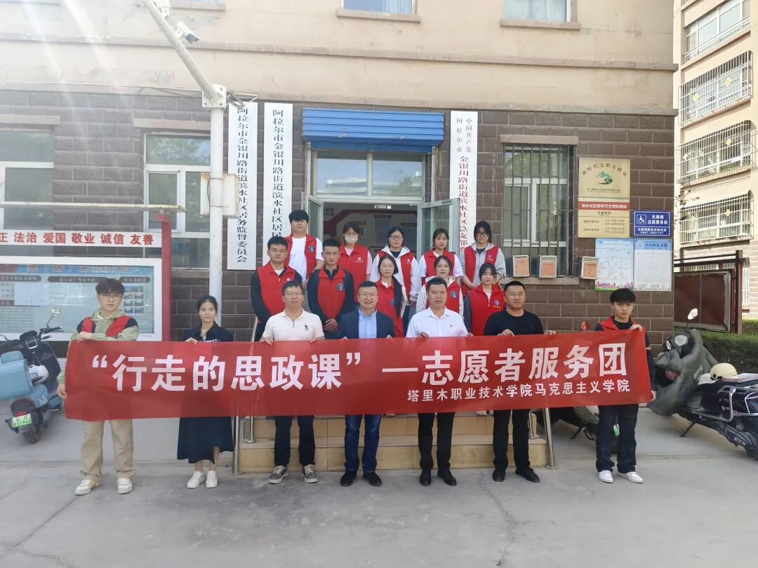 为深入贯彻落实习近平新时代中国特色社会主义思想,推动思政小课堂与社会大课堂深度融合,构建校地协同、资源共享、双向赋能的思想政治教育新格局, 4月2日,塔里木职业技术学院马克思主义学院与金银川路街道滨水社区举行“行走的思政课”实践教学基地共建揭牌仪式。