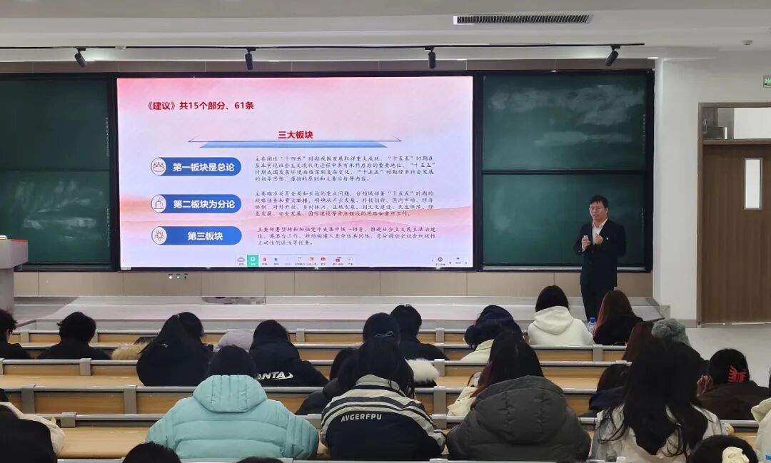 习近平总书记强调,“青年一代有理想、有本领、有担当,国家就有前途,民族就有希望”。马克思主义学院教师唐帅以“把握‘十五五’战略机遇,找准青年时代坐标”为核心,系统解读了党的二十届四中全会作为“推进中国式现代化新部署”的重大历史意义,深入剖析《中共中央关于制定国民经济和社会发展第十五个五年规划的建议》中“十五五”时期“基本实现社会主义现代化夯实基础、全面发力的关键时期”战略定位,结合新质生产力发展、教育科技人才一体化建设等全会重点部署,用通俗理论和鲜活案例详解核心要义,引导青年学子立足国家发展大局,将个人成长融入边疆建设与民族复兴伟业。
