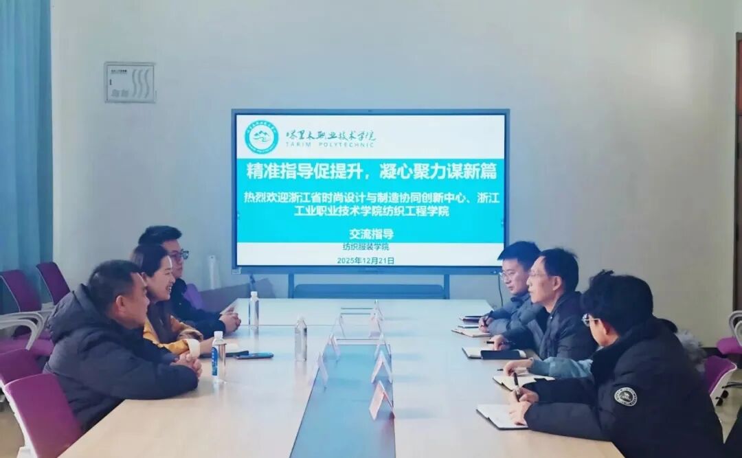 为充分借助东部优质教育资源与产业优势,破解西部纺织服装专业发展瓶颈,推动职业教育跨区域协同创新,近日,浙江工业职业技术学院纺织工程学院副院长汪芳教授、浙江省时尚设计与制造协同创新中心吴群教授一行莅临塔里木职业技术学院纺织服装学院,开展专项交流指导工作。