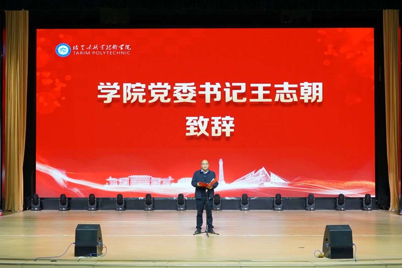 党委书记王志朝在致辞中回顾了学院在民族团结工作中的坚实足迹,也明确了新时代推进民族团结进步事业的责任与方向,为全体师生注入奋进动力。
