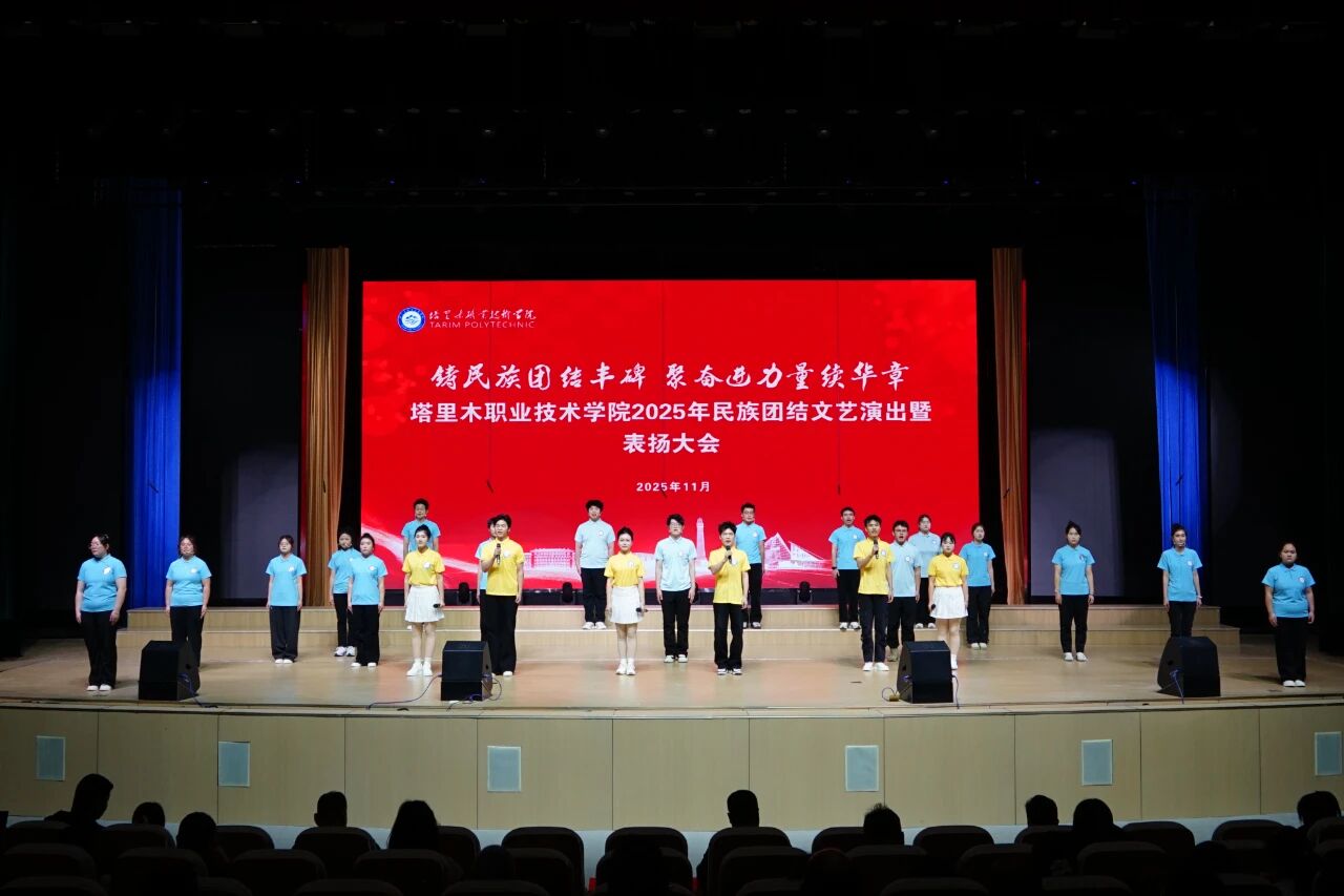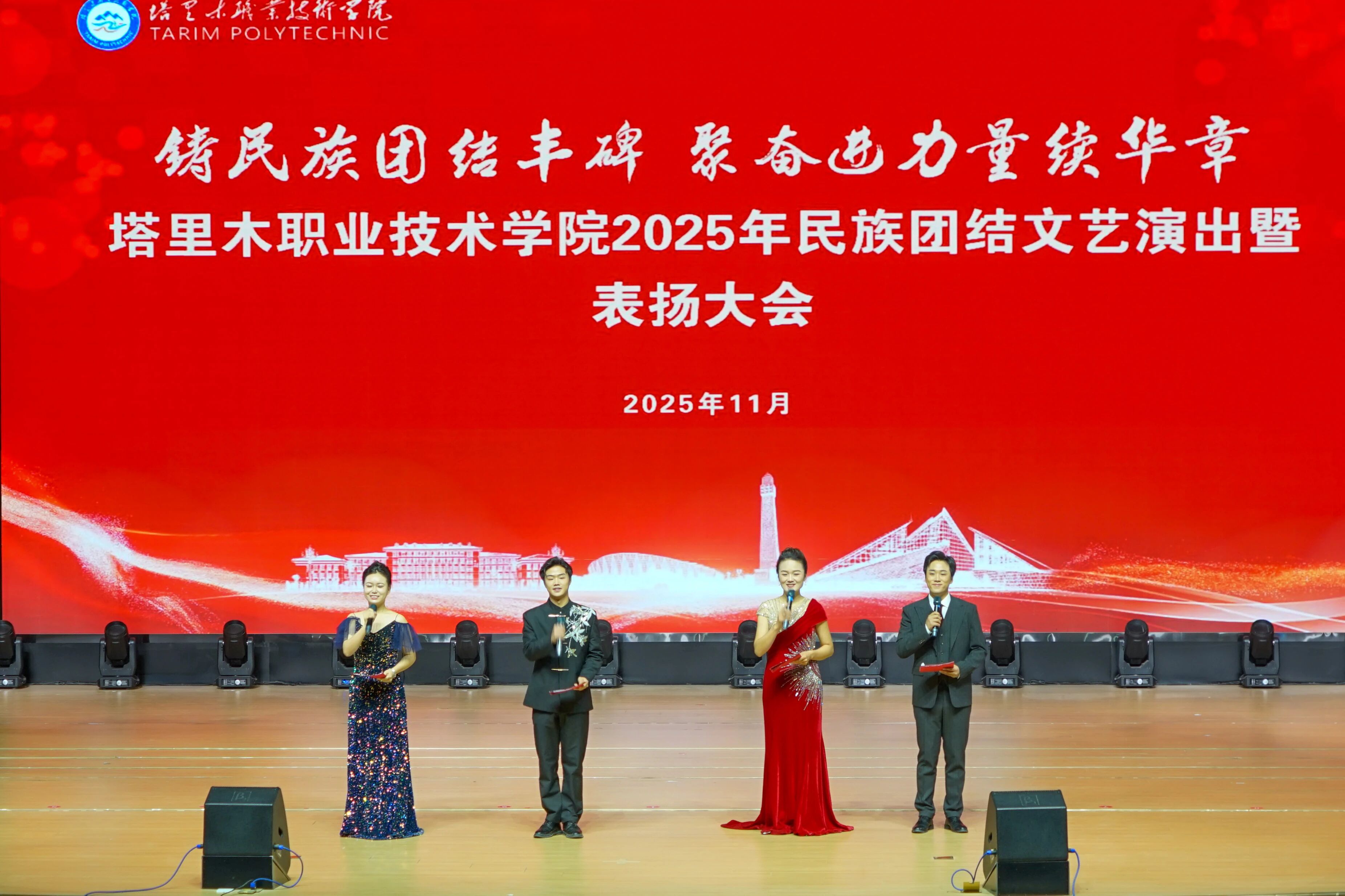 11月26日,塔里木职业技术学院隆重举办 “铸民族团结丰碑 聚奋进力量续华章” 2025年民族团结文艺演出暨第二批民族团结进步模范集体和模范个人表扬大会。师市机关相关部门、各单位嘉宾与学院师生齐聚一堂,共赏民族团结文艺盛宴,见证模范荣光,凝聚同心筑梦的磅礴力量。